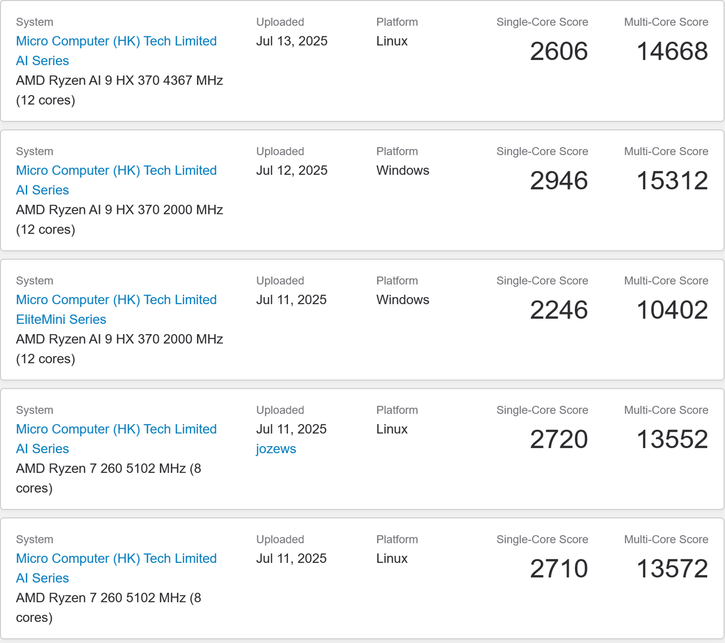美高电子 "Strix Halo" 平台基准测试记录现身,预计对应铭凡 AI 迷你主机
